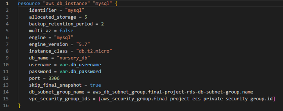 Mysql에 사용자 + 비밀번호를 variable로 설정하여 github 이나 terraform 코드에 확인 할 수 없게 하여 terraform apply 할 때 기입하는 방식으로 했습니다. 다른 시스템에서 코드 작성 및 활성화 하였지만 다른 시스템에 이상없이 잘 작동 (로컬외 작동 가능)