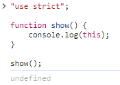엄격 모드(strict mode)에서 함수 내에서 this는 undefined가 됩니다.