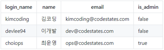데이터 모델은 앞서 언급한 바와 같이 표 형식으로 표현합니다. 사용자의 예시 :