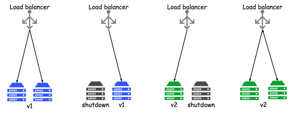- 이후 blue는 이전 green 환경의 역할을 가져감과 동시에 green이 잘 동작하지 않을 때 사용할 수 있는 백업 서버로의 역할도 수행이 가능하게 됩니다.