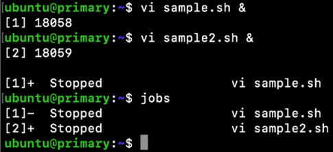 백그라운드에서 수행 중인 프로세스는 jobs 명령으로 확인할 수 있습니다.
