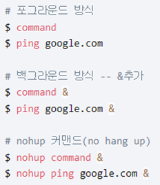 프로세스 방식 : 리눅스의 프로세스는 포그라운드(foreground)와 백그라운드(background)방식으로 동작합니다.