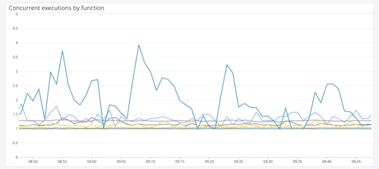 8. 동시 실행(concurrent executions) 메트릭은 함수가 동시에 여러 프로세스를 실행할 수 있는 경우를 의미합니다. 함수가 풀 내의 모든 동시성을 사용하고 있는지를 모니터링하고, 임계값에 도달하면 경고를 받을 수 있습니다.