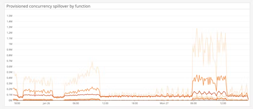 1. 람다를 모니터링하는 하나의 메트릭은 람다 함수의 동시성을 모니터링하는 것입니다. 우리는 몇 개의 새로운 인스턴스/요청이 처리되고 더 많은 요청이 처리될 것인지, 함수가 제한에 도달하고 스로틀링될 때까지 이벤트를 처리하는 데 얼마나 걸리는지에 대해 질문할 수 있습니다. 함수의 동시성을 모니터링하는 것은 사용자가 예약된 또는 프로비저닝된 동시성을 구성할 수 있도록 합니다.