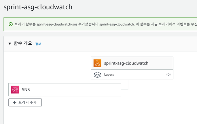 3.2 아까 생성한 SNS 하고 Lambda 함수 하고 연결