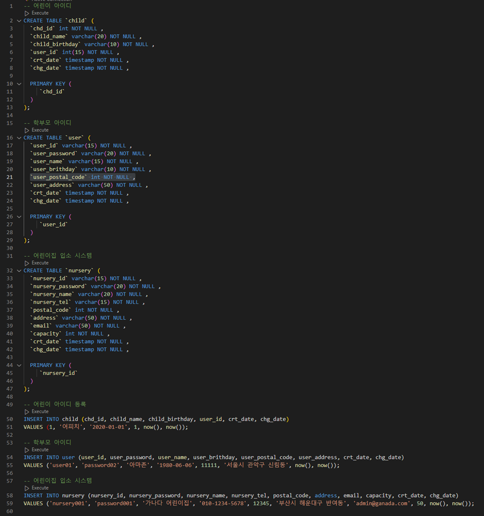 1.5 `user_postal_code` int NOT NULL , ->INSERT INTO 부분에 user_postal 만 오타하여 코드가 값을 인식 못해서 error